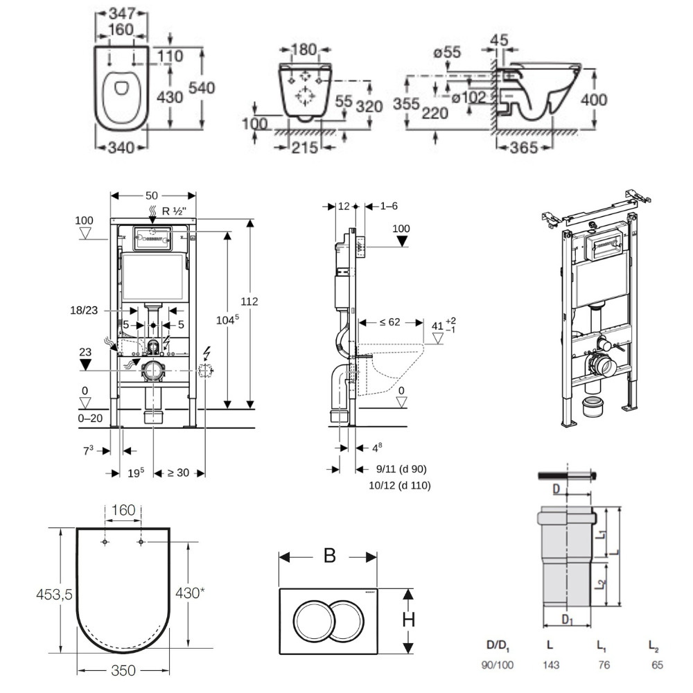 - Geberit Ensemble bâti-support Duofix UP100 + réservoir pour WC 112 cm (458.103.00.2)