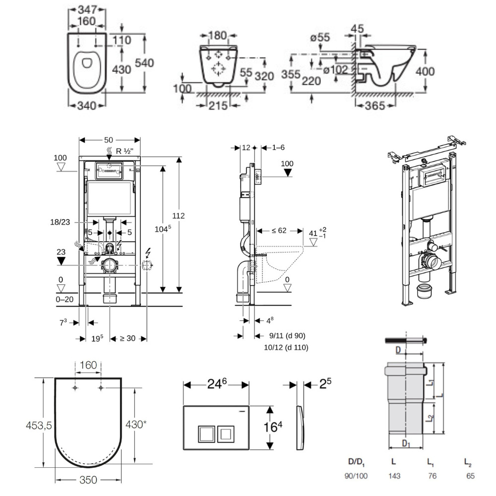 - fourreau isolant pour l’arrivée d’eau pour Geberit AquaClean