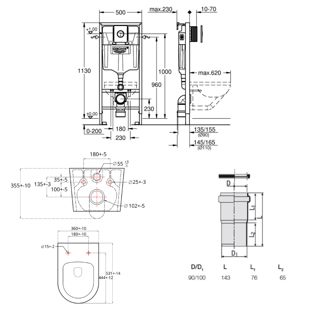 - Redi Manchon de raccordement Ø 90/100 MM pour Rapid SL ou Geberit (VS0564190)