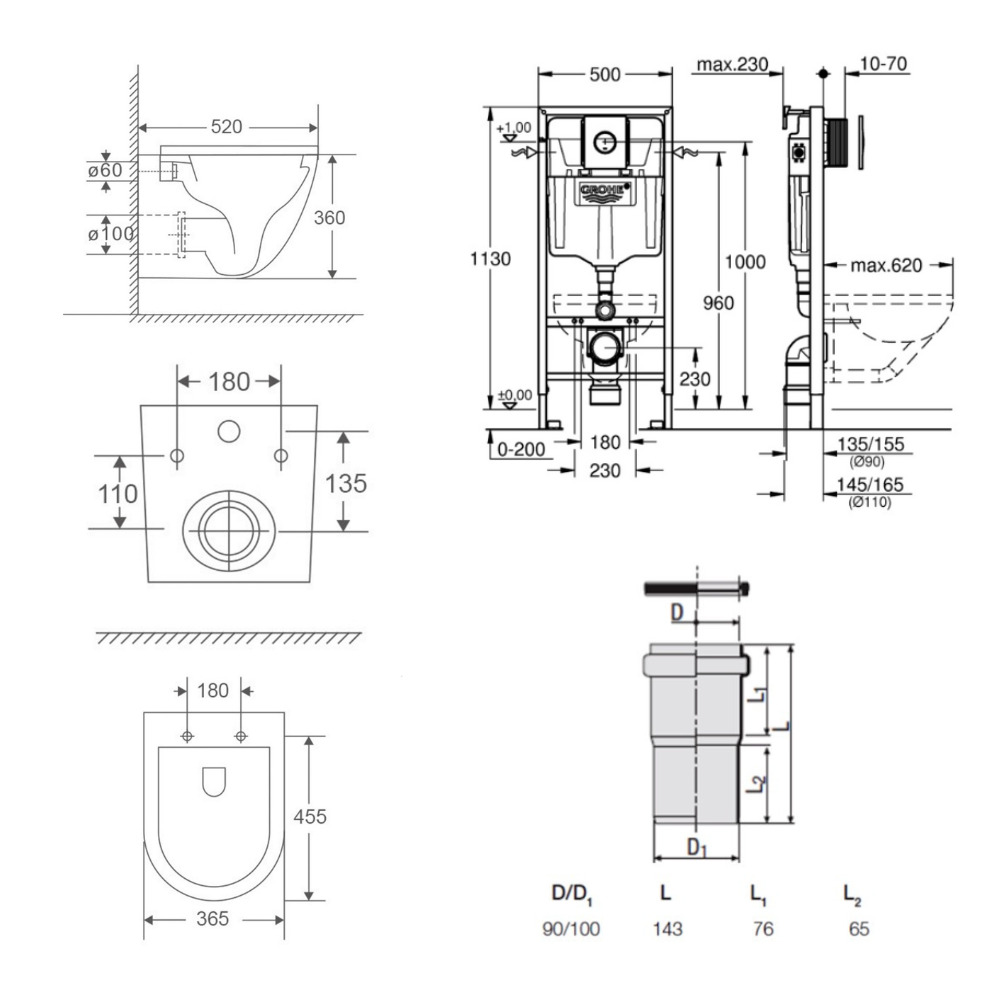 - Réservoir de chasse d’eau encastré GROHE GD 2 (6 à 9 litres)