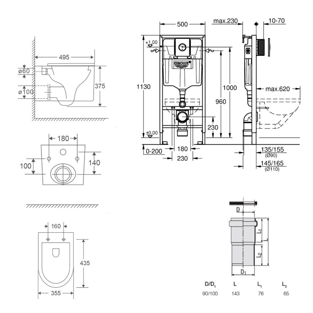 - Réservoir de chasse d’eau encastré GROHE GD 2 (6 à 9 litres)