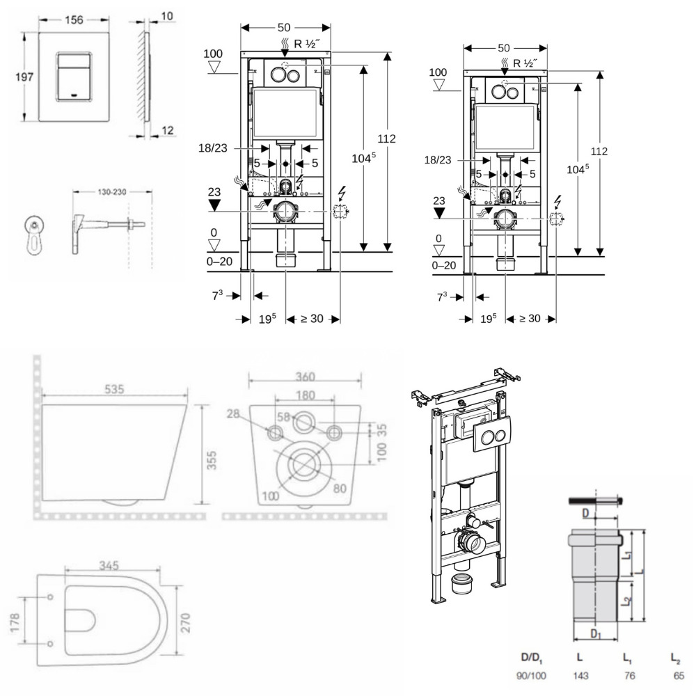 - Geberit Pack Bâti-support Duofix 112cm + Plaque de commande Delta20 blanc alpin + fixations murales (458.134.11.3)