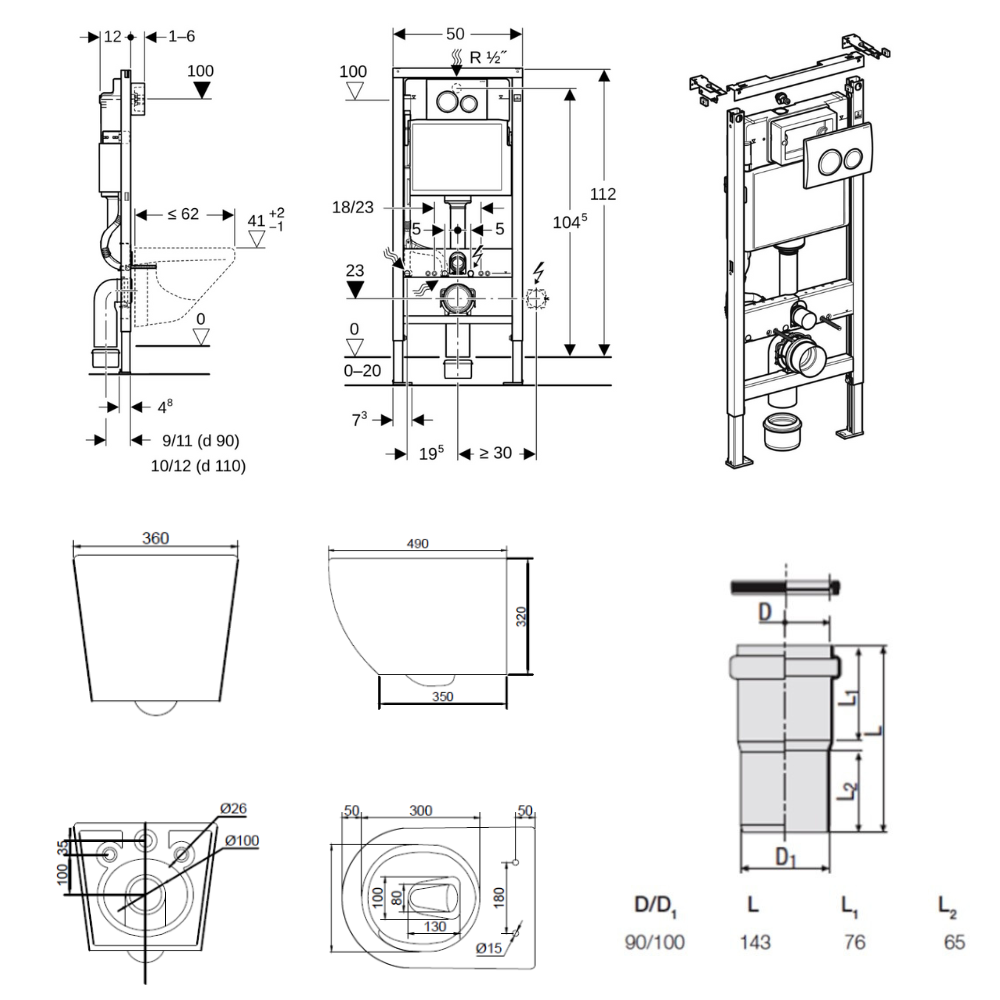 - Geberit Ensemble bâti-support Duofix UP100 + réservoir pour WC 112 cm (458.103.00.2)