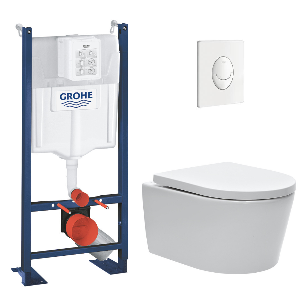 Grohe Rapid SL pack WC bâti autoportant + WC suspendu sans bride Swiss Aqua Technologies + abattant + plaque (GRRSTBRWR02MAN-FR)