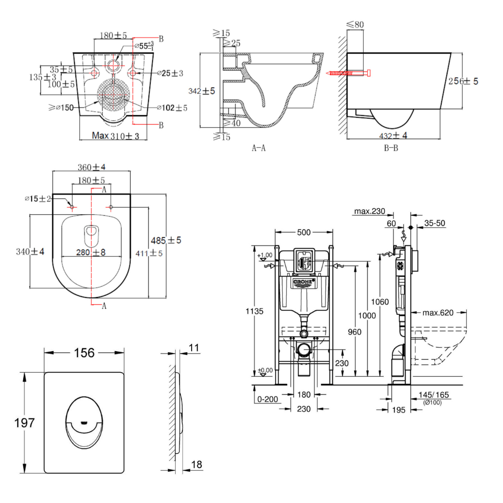 - Grohe RAPID SL Project bâti support autoportant pour WC, 1.13 M (39145000)