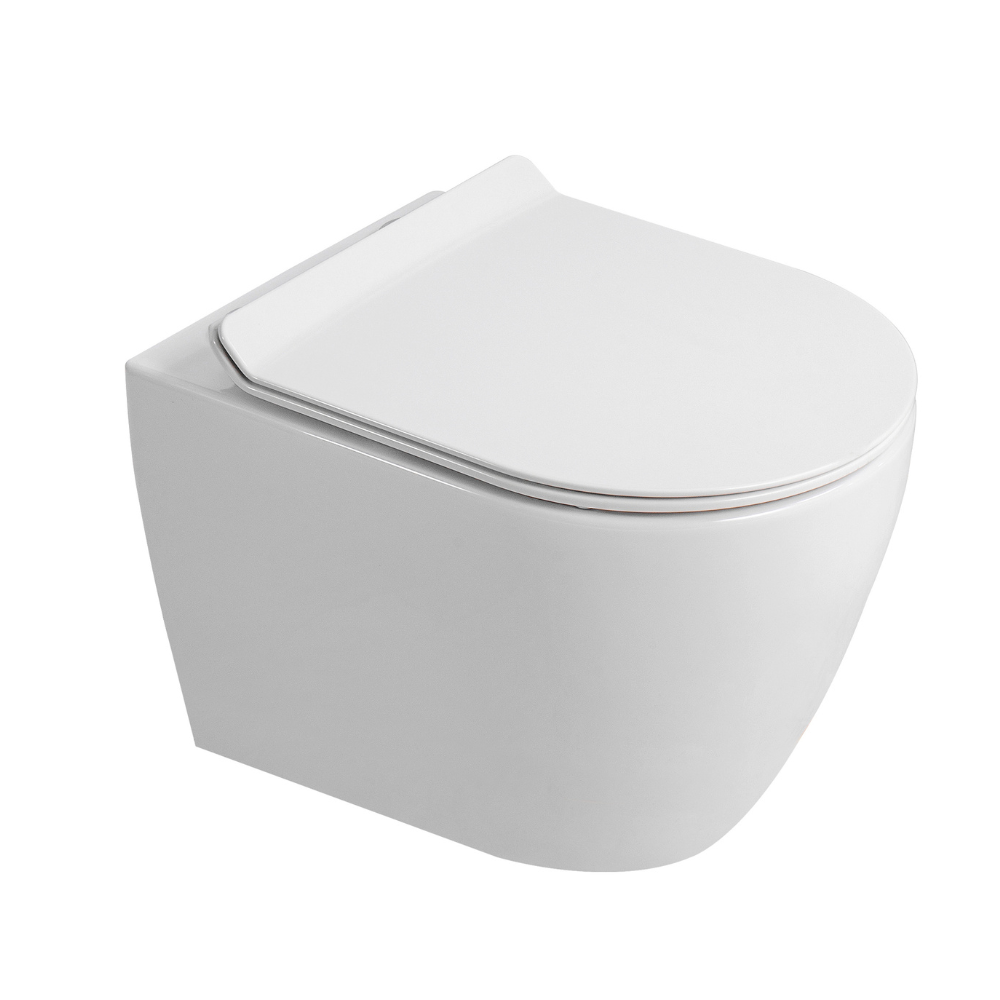 PixL Cuvette suspendue en céramique sans bride Tornado Quiet et fixations invisibles + abattant softclose, blanc (CEPX010RTORP) :