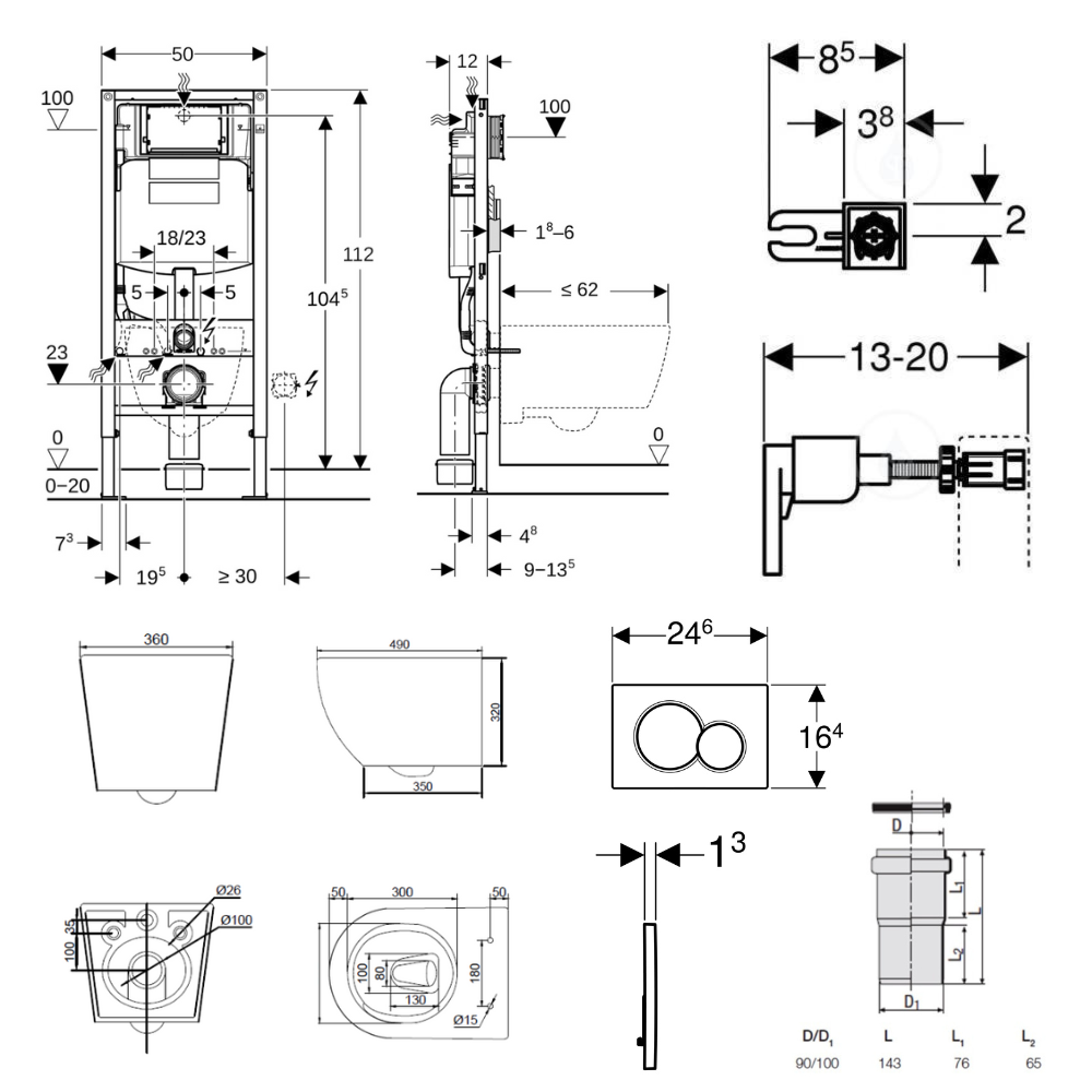 - Rinçage à 2 volumes, convient pour plaques de déclenchement Geberit Sigma01, Sigma20, Sigma50, Sigma60, Sigma70, Sigma80 ou Bolero