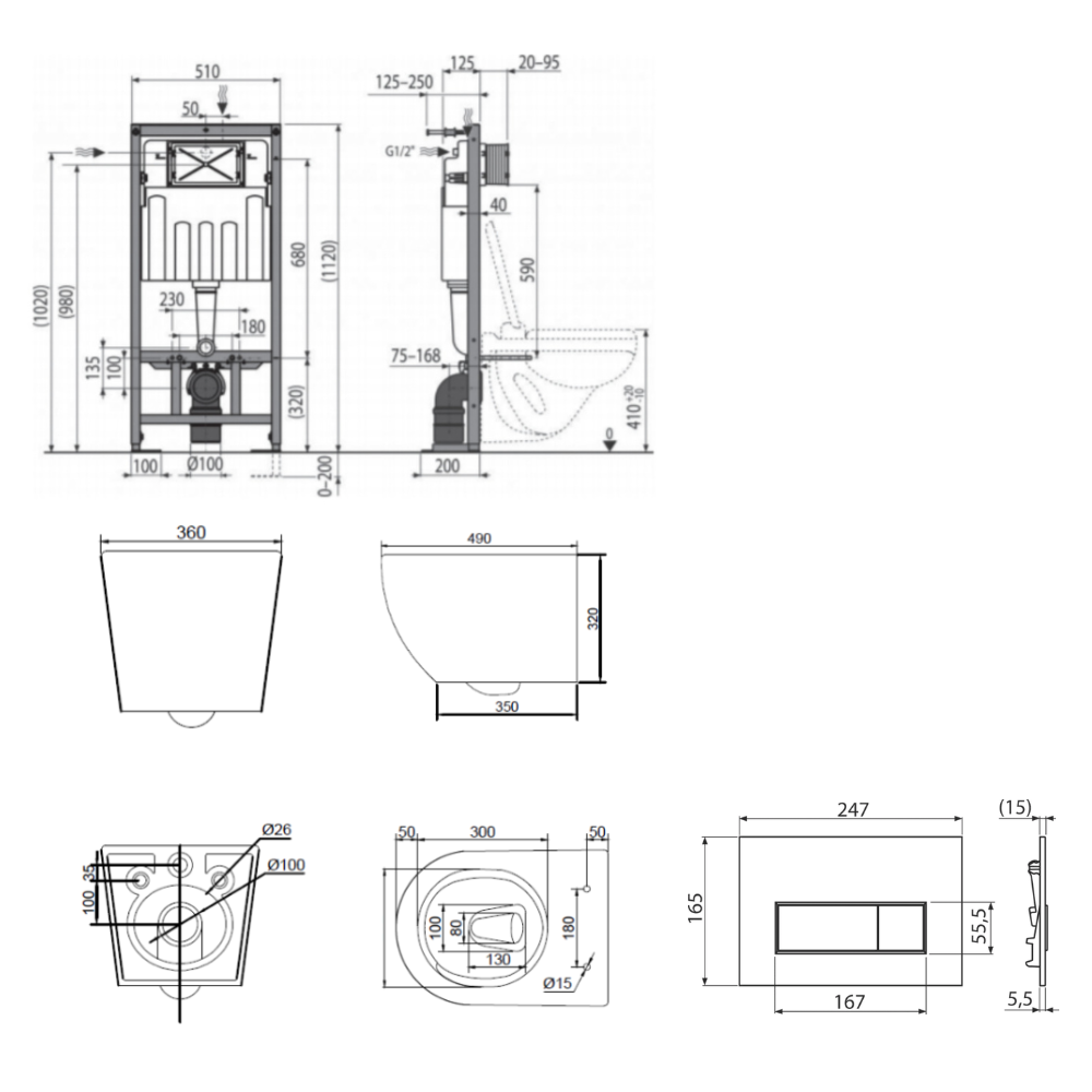 - Pour le montage de cuvettes WC suspendues avec un pas de raccordement de 180 mm ou 230 mm