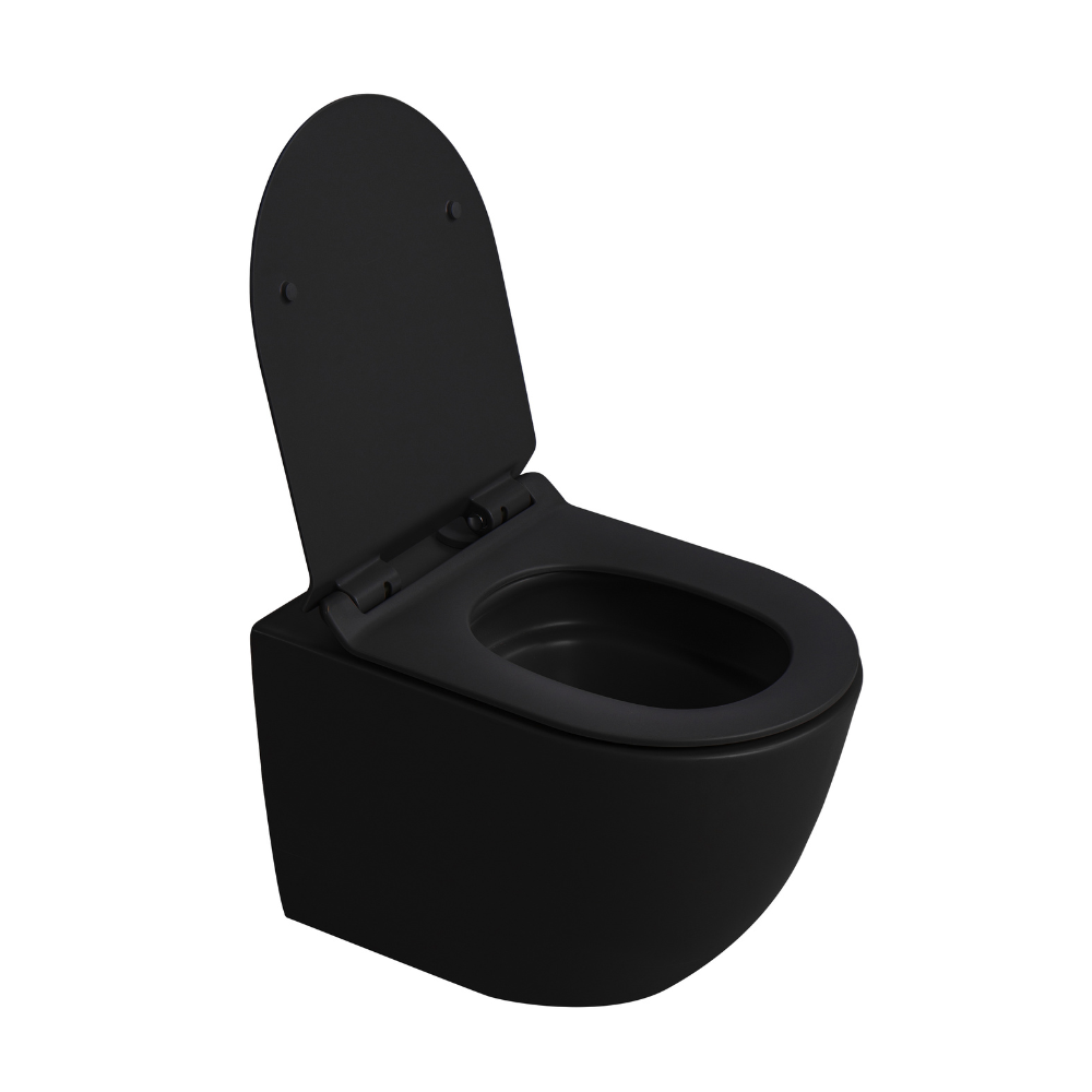 - Ceramia PixL Cuvette suspendue en céramique, sans bride, Tornado, fixations invisibles + abattant Softclose, noir (CEPX010RTORPBKM)