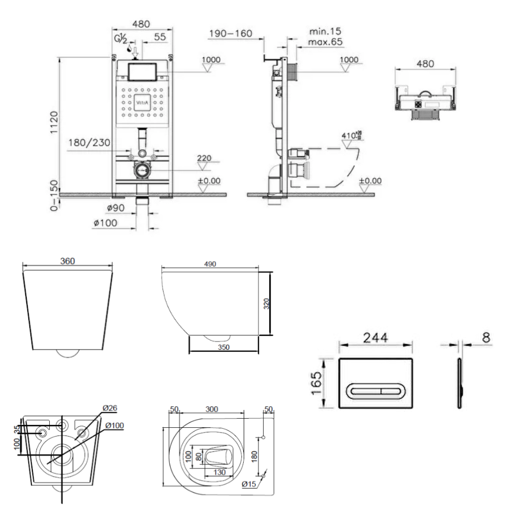 - Vitra V-Fix Core bâti support autoportant pour WC, 1.12 M (732-5800-01TF)