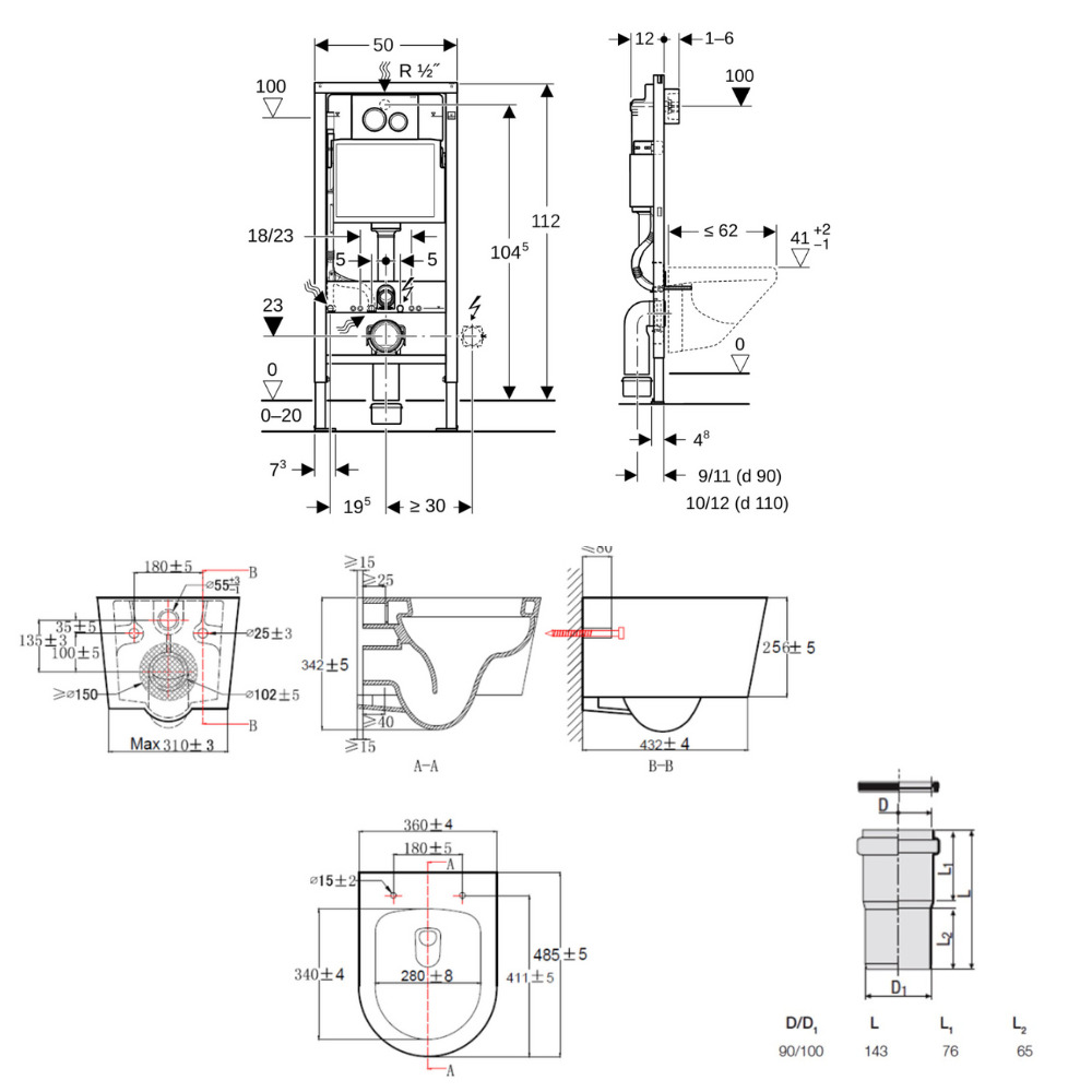 Ces bâti-supports pour WC suspendus ne peuvent être installés contre des cloisons en plaques de plâtre à âme alvéolaire en carton, contre des cloisons en plaques de plâtre sur ossature métallique ou contre des cloisons de séparation double peau en plaques de plâtre sur ossature métallique sans accessoirisation additionnelle (substitution des pieds fournis par des pieds autoportants) ou l'ajout de renforts complémentaires (à intégrer au préalable dans la cloison au niveau des fixations hautes).
