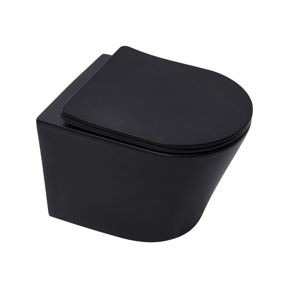WC suspendu Infinitio noir mat sans bride et fixations invisibles + abattant frein de chute (BlackInfinitio) :