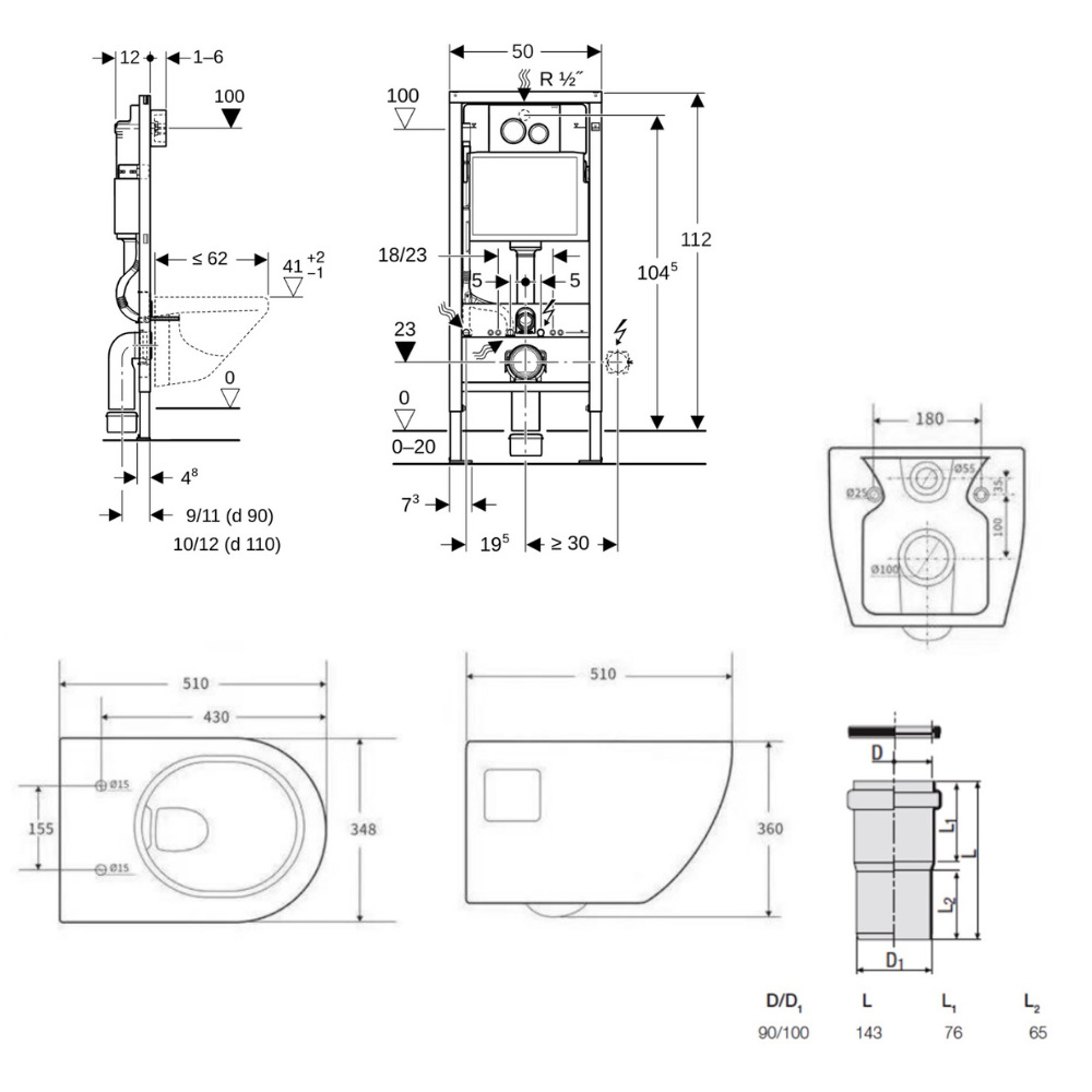 - Geberit Ensemble bâti-support Duofix UP100 + réservoir pour WC 112 cm (458.103.00.2)