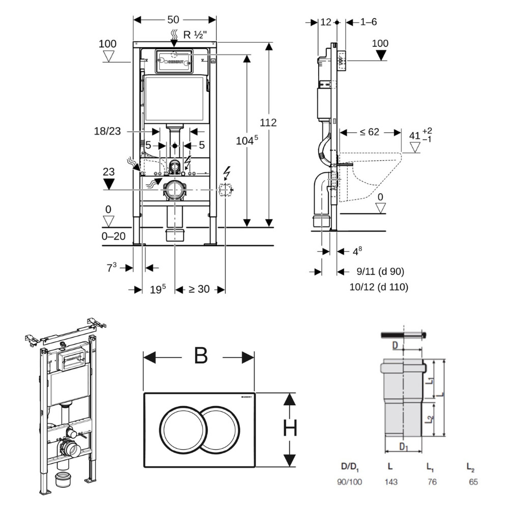- Geberit Ensemble bâti-support Duofix UP100 + réservoir pour WC 112 cm (458.103.00.2)