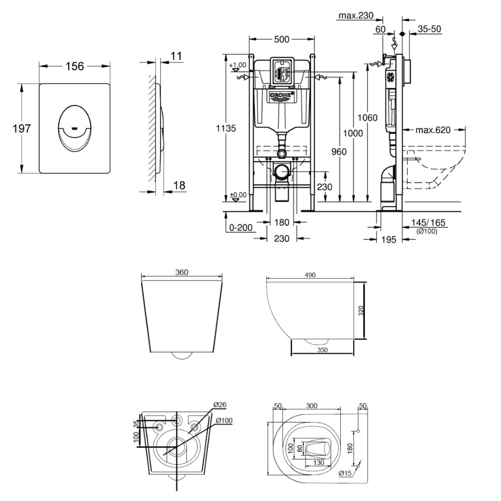 - Grohe RAPID SL Project bâti support autoportant pour WC, 1.13 M (39145000)