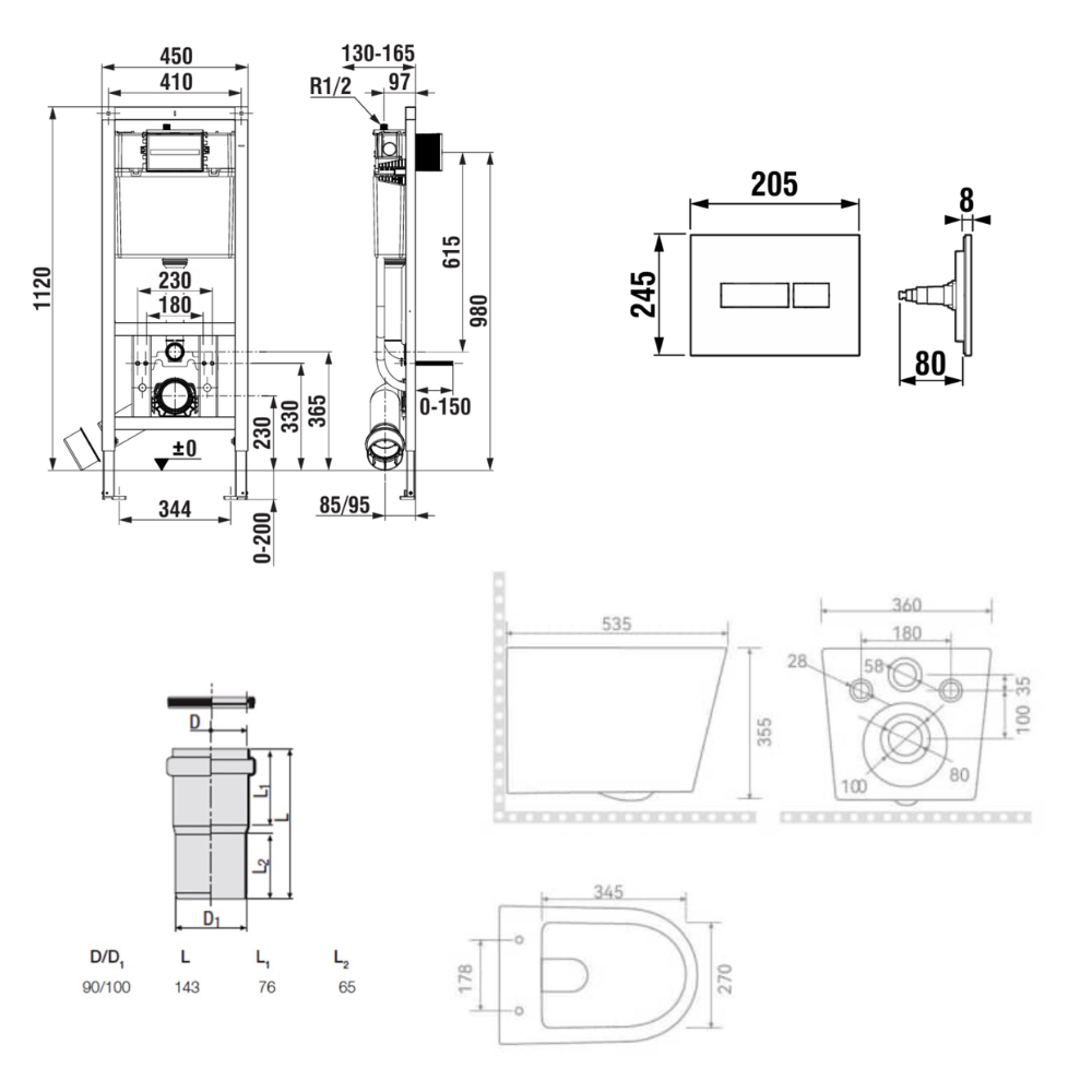 Bâti-support encastrable pour WC suspendu, installation sur cloison légère, hauteur 112 cm, chasse 2/4-6 L (A8900200Z0) :