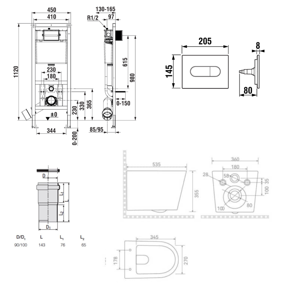 Bâti-support encastrable pour WC suspendu, installation sur cloison légère, hauteur 112 cm, chasse 2/4-6 L (A8900200Z0) :
