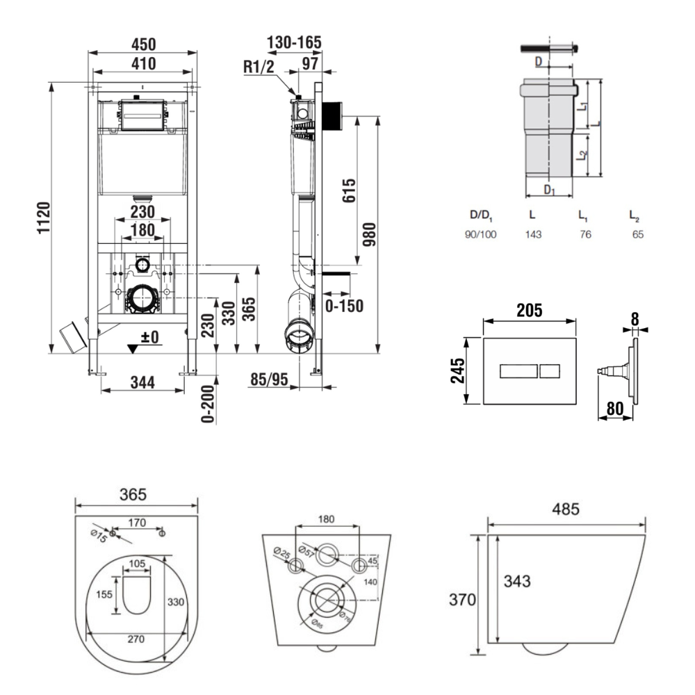 Bâti-support encastrable pour WC suspendu, installation sur cloison légère, hauteur 112 cm, chasse 2/4-6 L (A8900200Z0) :