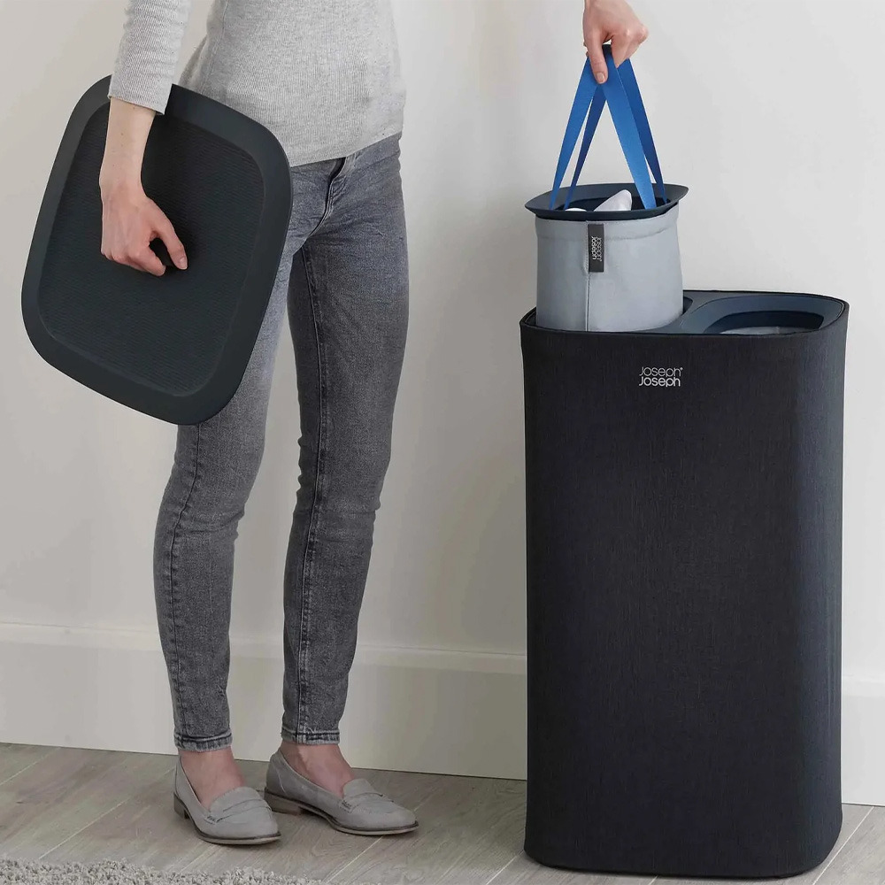 Joseph Joseph Tota panier de séparation du linge, facile à vider, 60 litres, noir (50002)