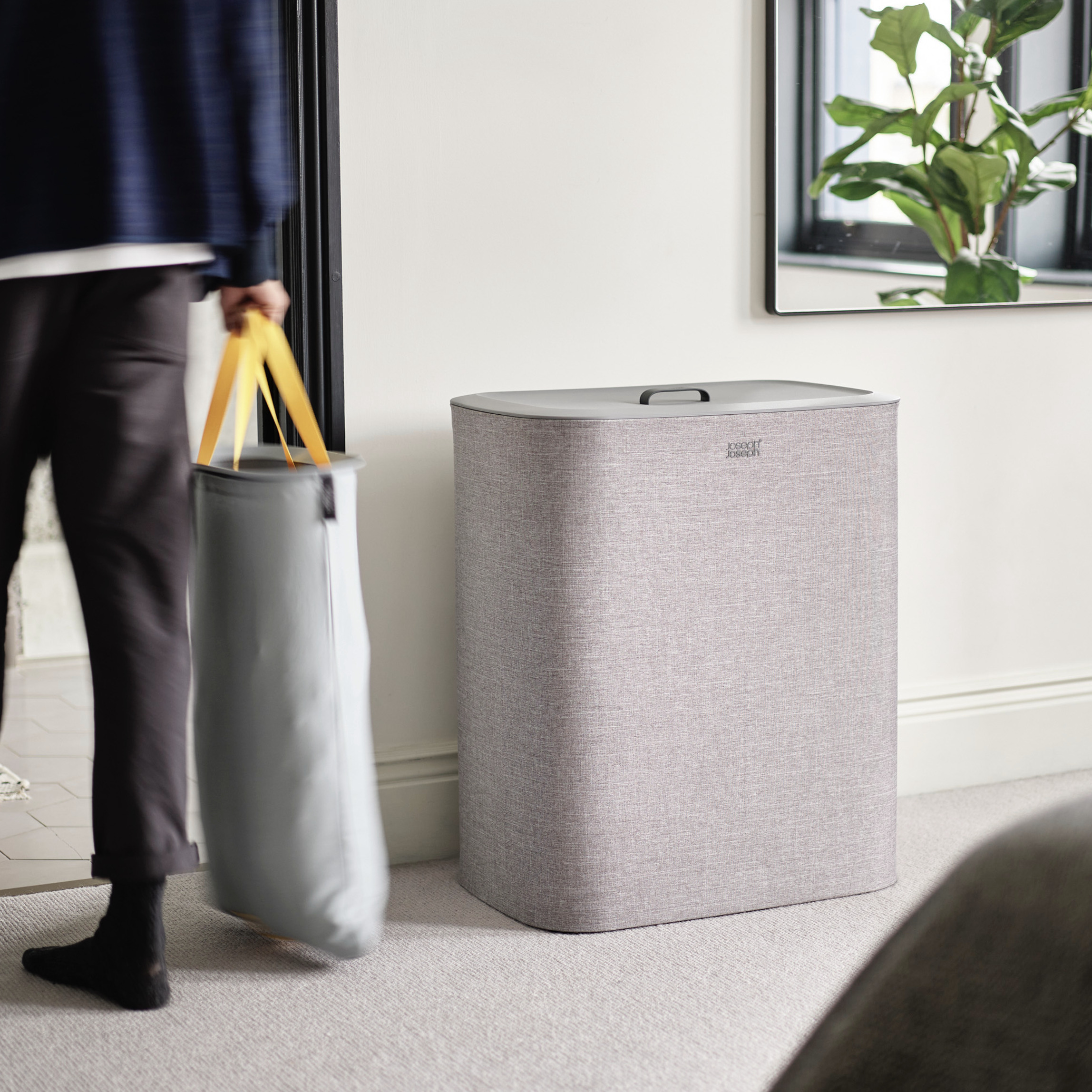 Pratique et vraiment utile, le panier à linge Tota Trio de Joseph Joseph vous permet de trier votre linge dans trois sacs en toile facilement amovibles (30 litres chacun).