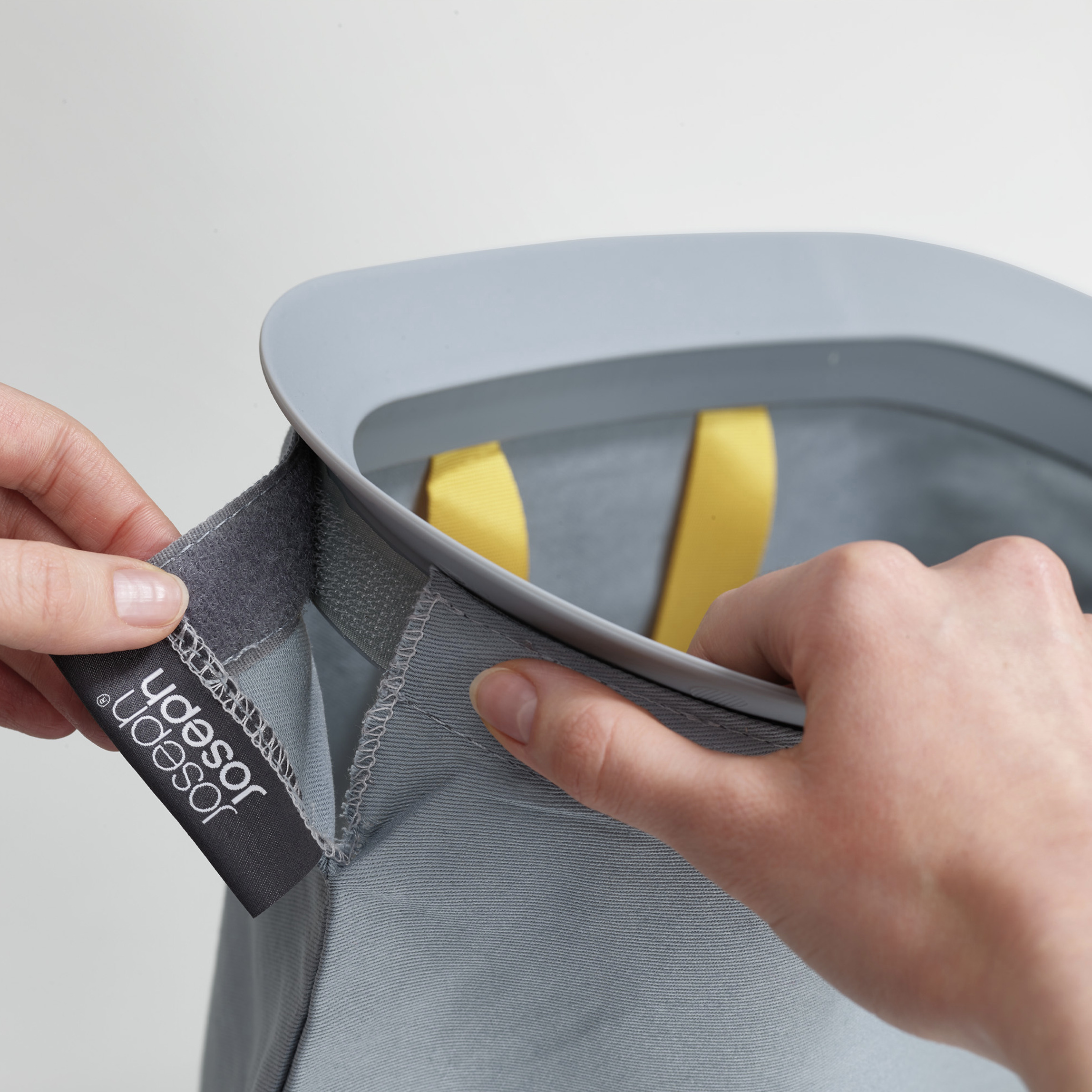 Les sacs ont des poignées pour un transport pratique vers la buanderie. Il y a des poignées sur la face inférieure des sacs pour faciliter leur vidage. Une fois le sac vidé, vous pouvez le remettre rapidement et facilement dans le corps du panier.