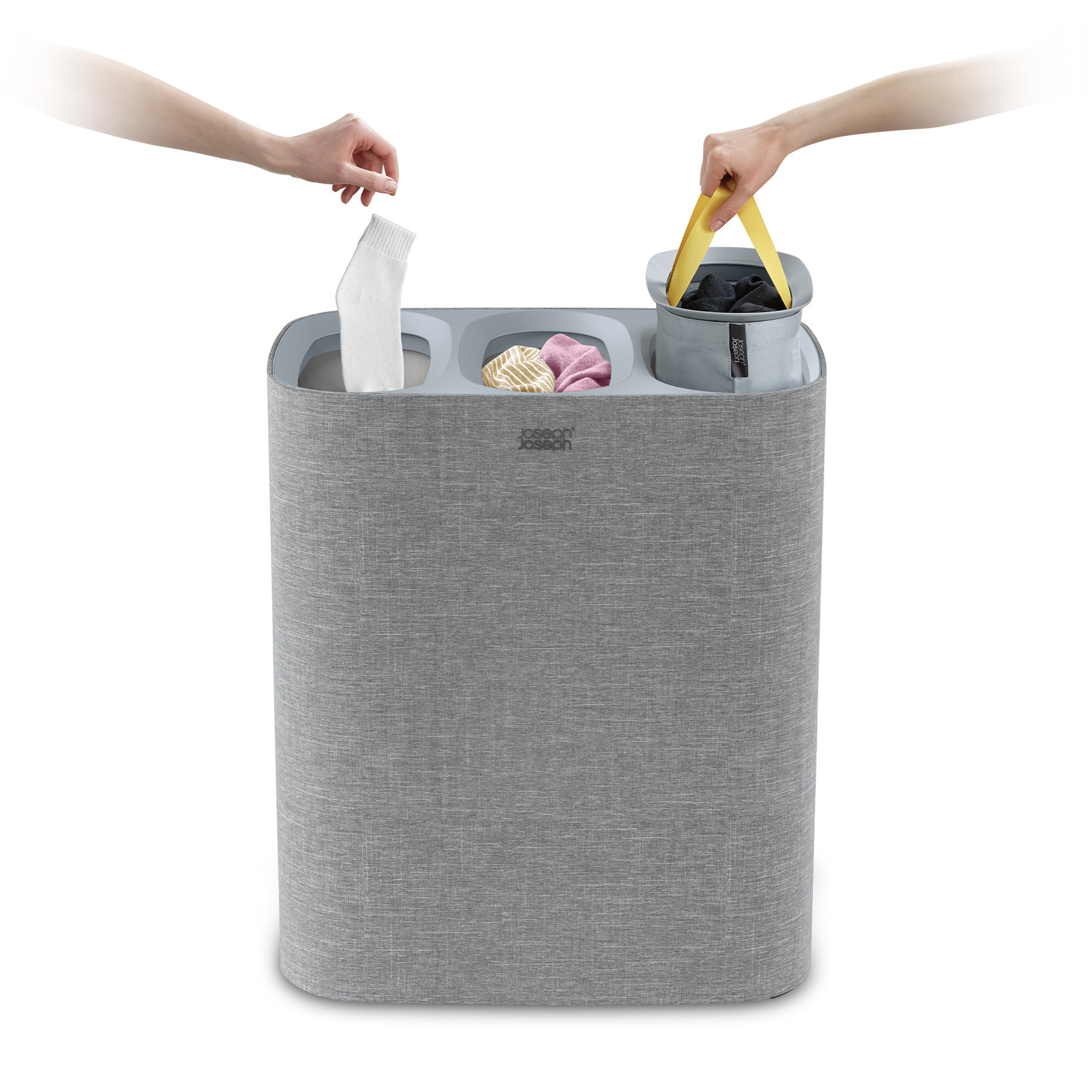 Joseph Joseph Tota Trio 90 L (3x30 L), panier de séparation du linge, 3 sacs en toile lavable en machine, gris (50024)