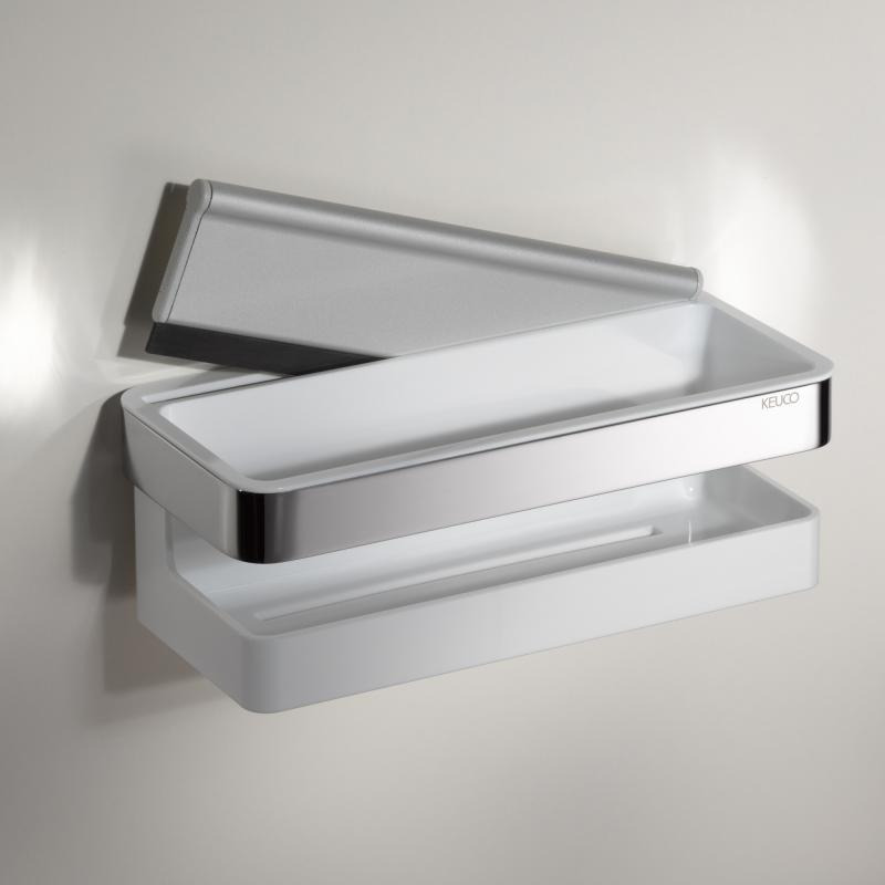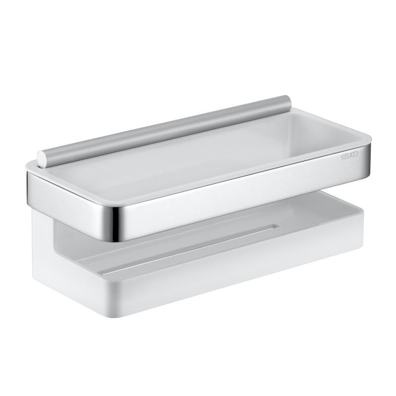 Keuco Moll Panier de douche avec raclette intégrée, amovible, fixation murale invisible, Chrome/Blanc (12759010000)