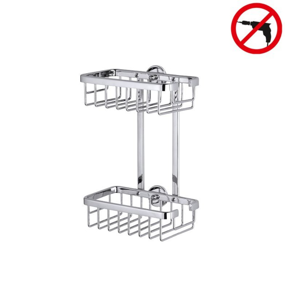Tesa Aluxx Etagère 2 paniers 26x18x10,7cm, Aluminium, Chrome, pose facile sans perçage (40211-00000-00)