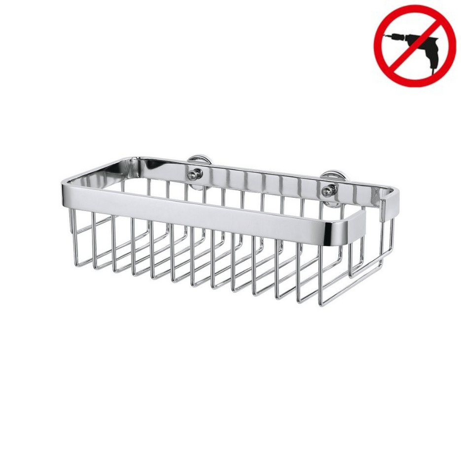 - Panier de douche en acier inoxydable avec technologie tesa® Power.Kit (solution de fixation complète)