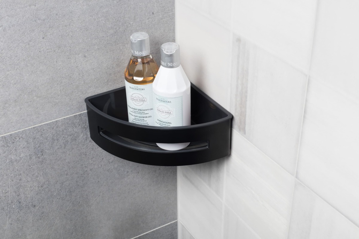 Laissez vous tenter par le Panier d'angle pour la douche en acier inoxydable 16,5cm, Noir (SATDPOLROHMC).