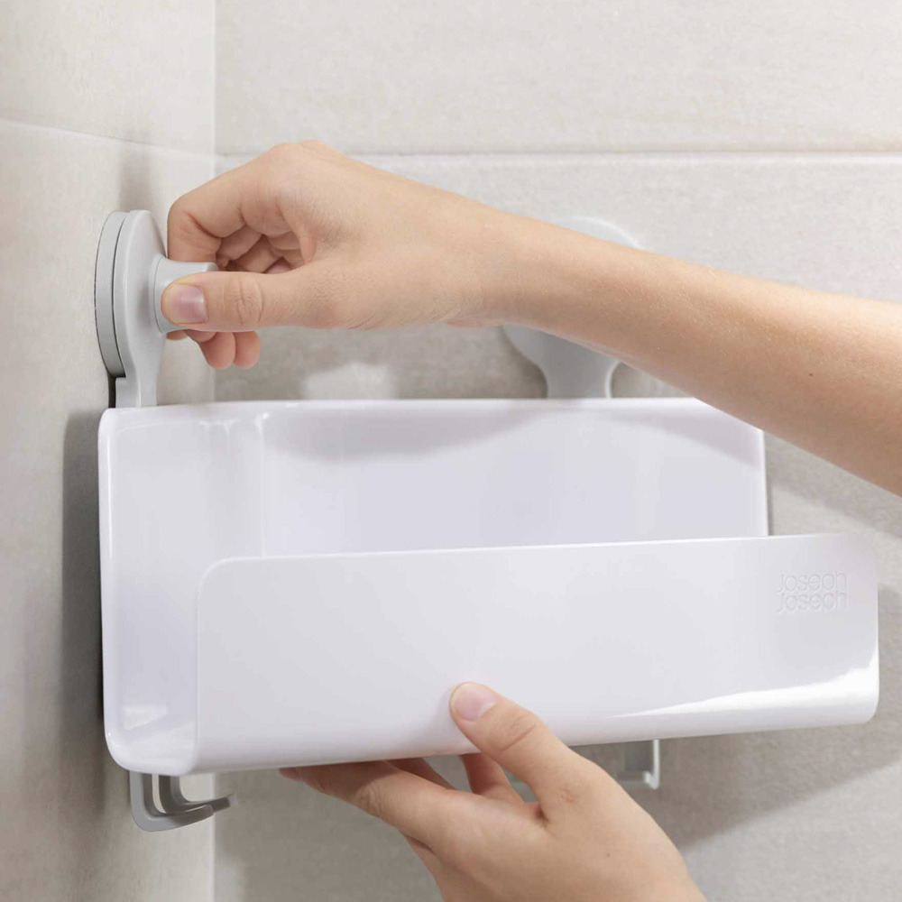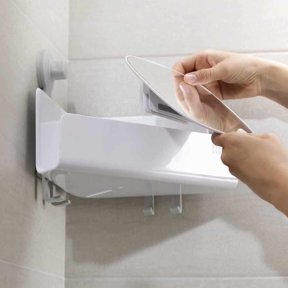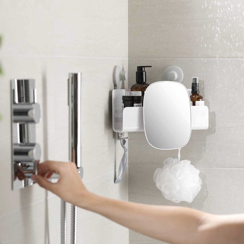 Joseph Joseph EasyStore™ Étagère de douche d'angle avec miroir amovible et incassable, blanc (70549)