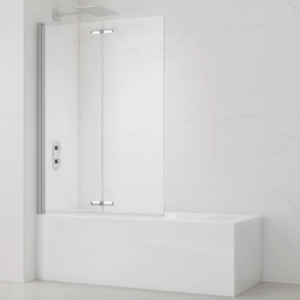 Swiss Aqua Technologies 150x105 cm SK Pare-baignoire en verre 2 volets pliants, orientation gauche et droite, chrome (SATVZSKNEW105)