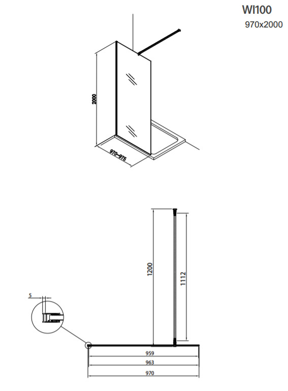 Cette paroi offre un design minimaliste et contemporain avec ses dimensions généreuses de 200 cm de hauteur et 97 cm de largeur, assurant une durabilité exceptionnelle grâce à un verre de 8 mm d'épaisseur.