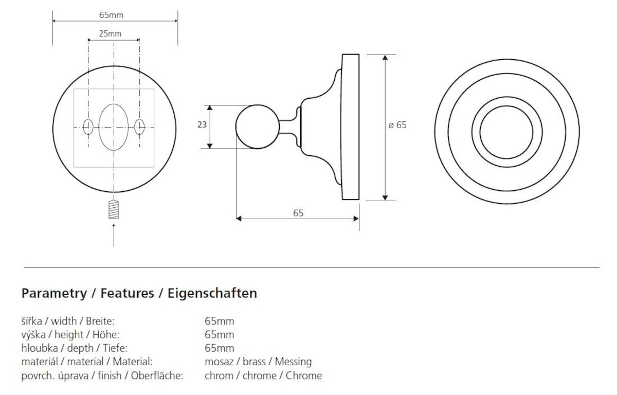 Caractéristiques du crochet en Laiton, Chrome Bemeta Ricordi (OPTIMARIC21CR) :