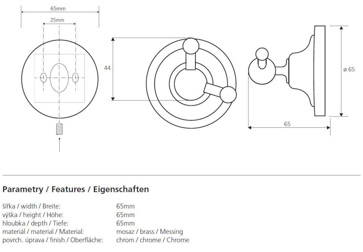 Caractéristiques du crochet double en Laiton, Chrome Bemeta Ricordi (OPTIMARIC22CR) :