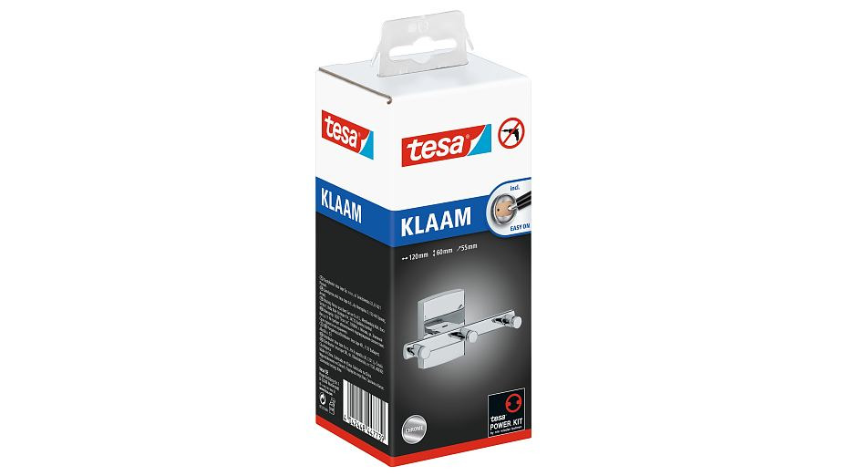 Tesa Klaam Crochet porte-serviette 3 têtes 6x12x5,5cm, Métal, Chrome, pose facile sans perçage (40262-00000-00)