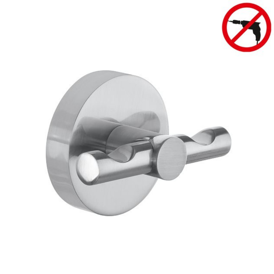 Caractéristiques du Double crochet porte-serviette, Acier inoxydable mat, pose facile sans perçage, Tesa Moon (40305-00000-00) :