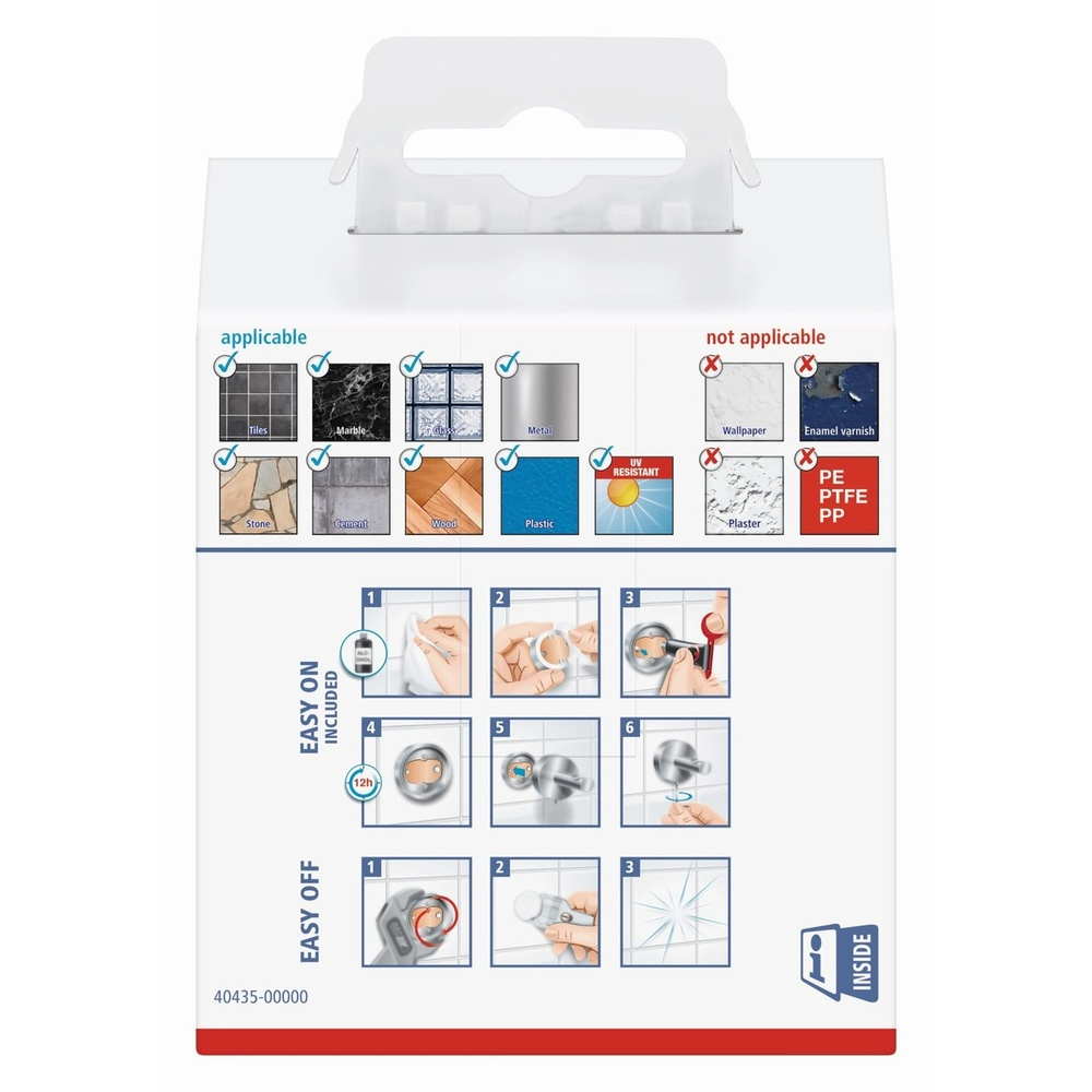 Aucun dommage aux murs ni au carrelage. La colle sèche en 12 heures. Le support se retire rapidement, sans laisser de traces, à tout moment. Grâce au nouvel adaptateur BK20, vous pouvez facilement l'utiliser ailleurs.