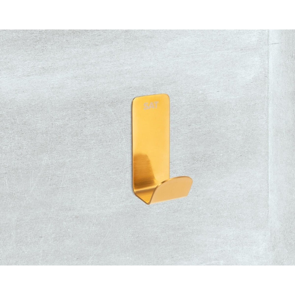 Patère couleur or brossé. Cet accessoire de salle de bain de la marque SAT mesure 3 cm de large et est fabriqué en acier inoxydable.
