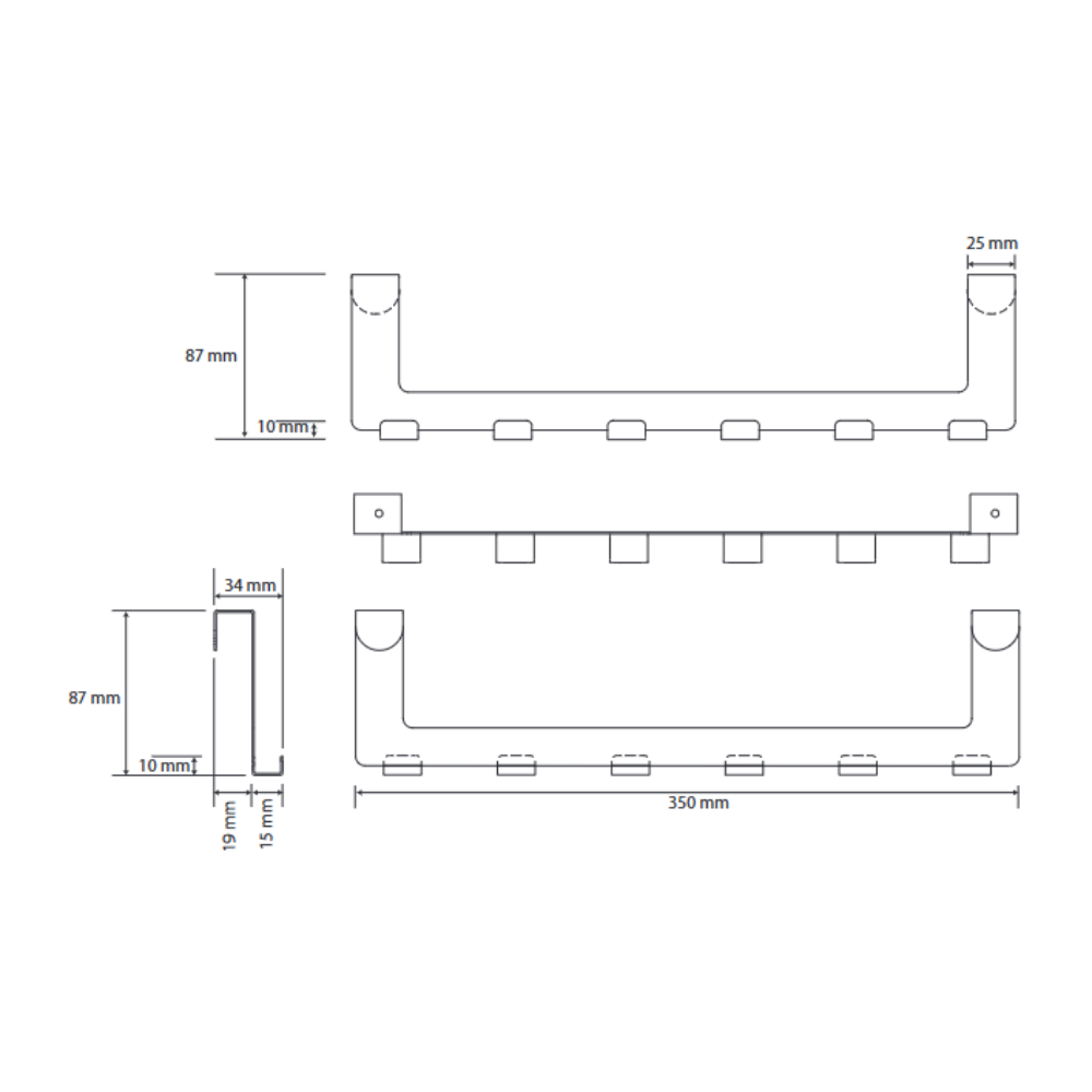 Cintre de porte avec 6 crochets. La largeur de cet accessoire de salle de bains de Bemeta est de 35 cm et il est fabriqué en Acier.