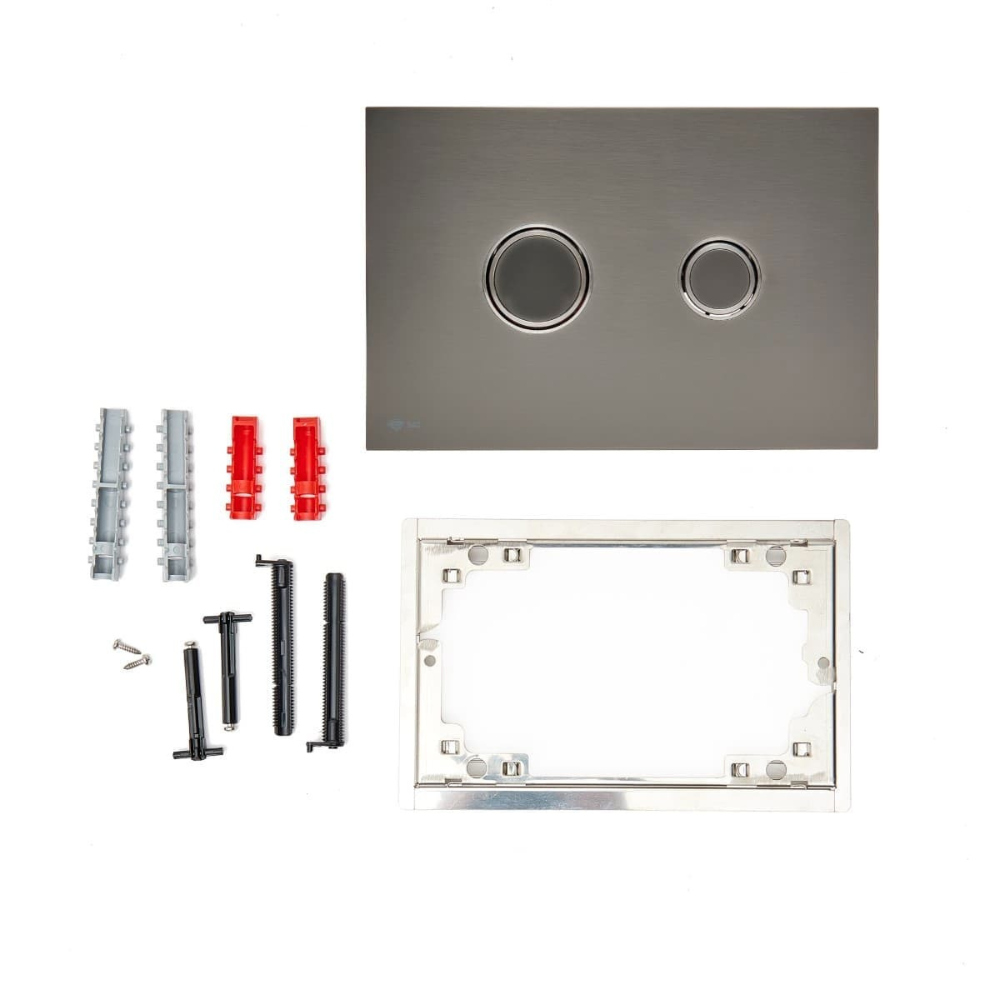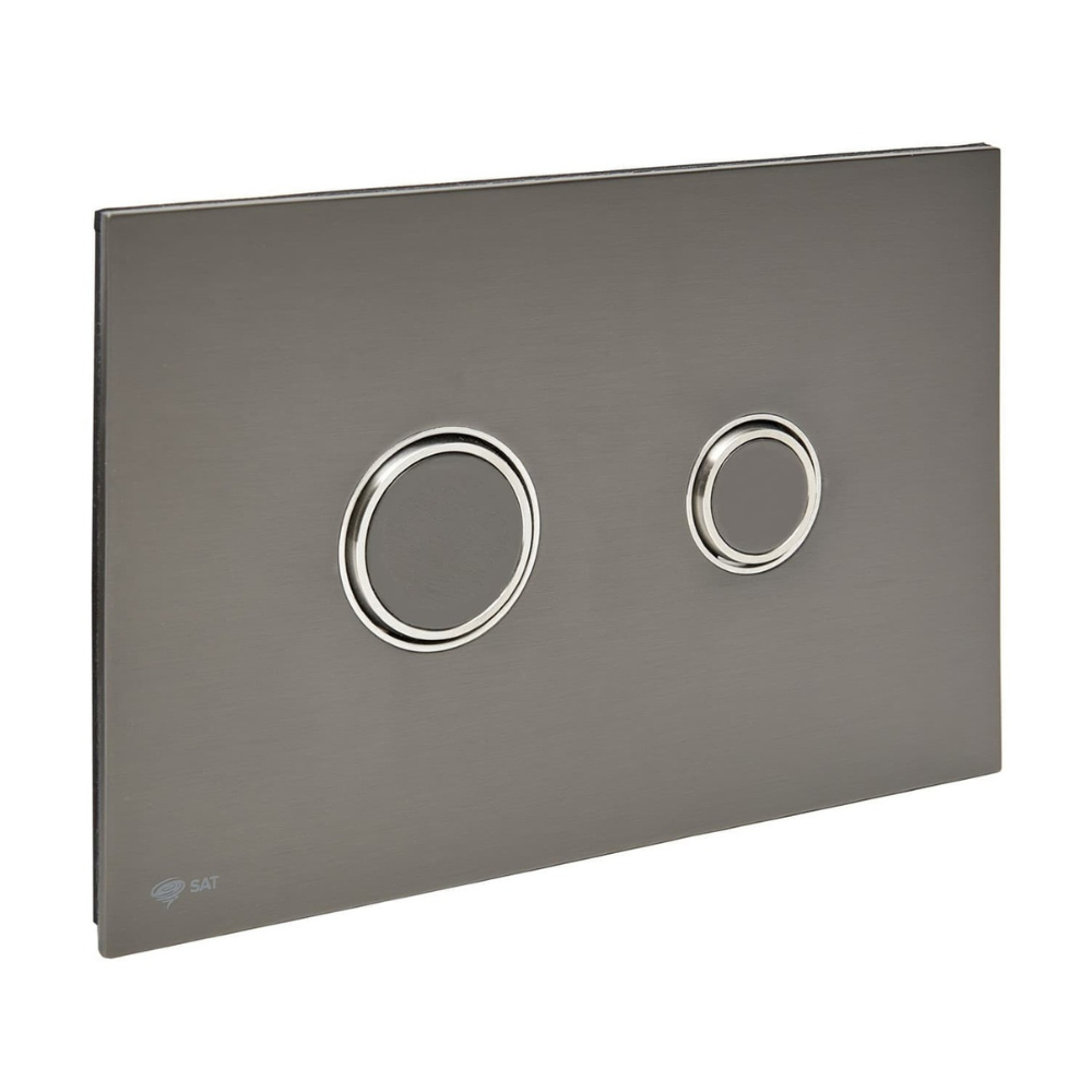 Caractéristiques de la plaque de commande double touche en acier inoxydable, traitement PVD, Swiss Aqua Technologies, gun metal mat (SATATBGM) :