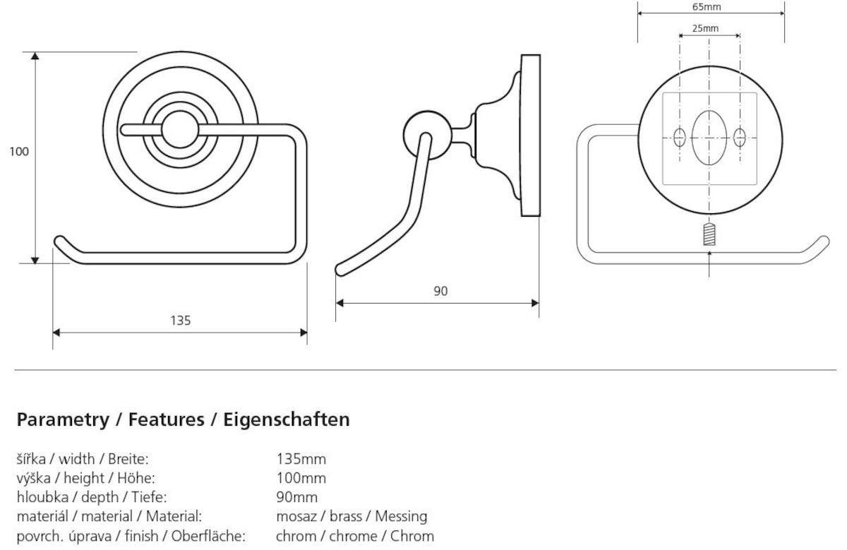 Caractéristiques du porte-papier toilette en Laiton, Chrome Bemeta Ricordi (OPTIMARIC26CR) :