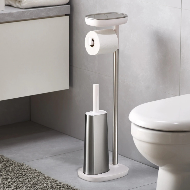 Joseph Joseph EasyStore™ Porte-papier toilette autoportant avec brosse de toilette Flex Steel, Acier inoxydable (70519)