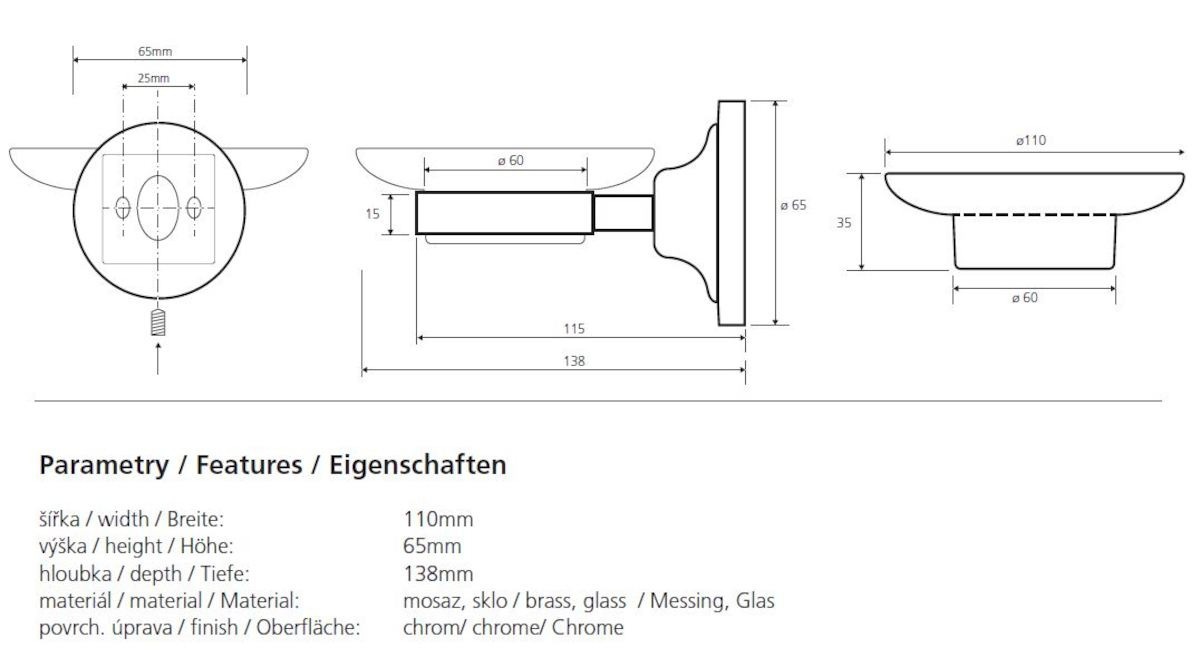 Caractéristiques du porte-savon en Laiton, Chrome Bemeta Ricordi (OPTIMARIC39CR) :