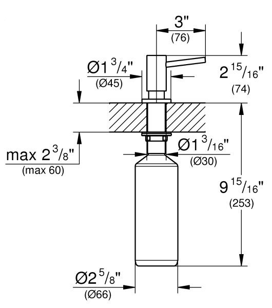 Caractéristiques du Distributeur de savon liquide avec pompe et réservoir 500ml, Hard Graphite brossé, Grohe Cosmopolitan (40535AL0) :