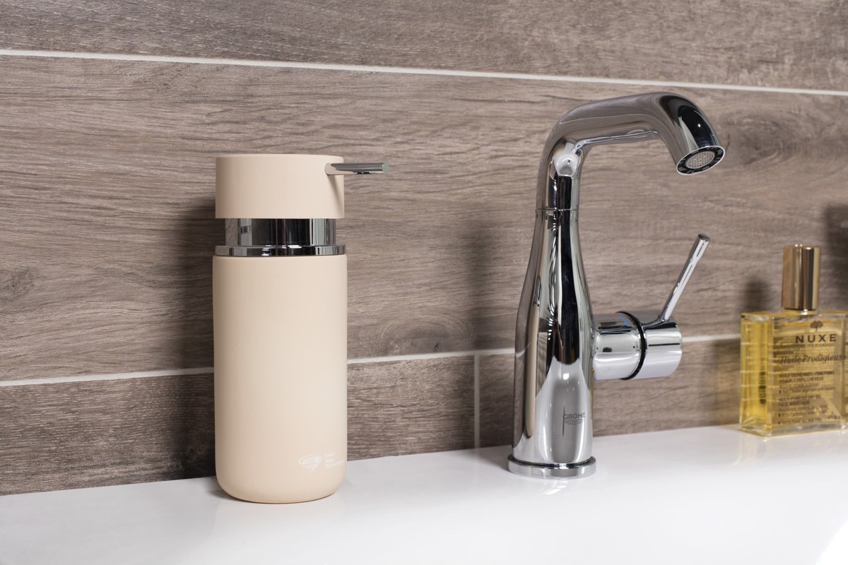 Ce distributeur de savon liquide en finition marron mat apportera à votre salle de bain de la modernité grâce à son design minimaliste et coloré.