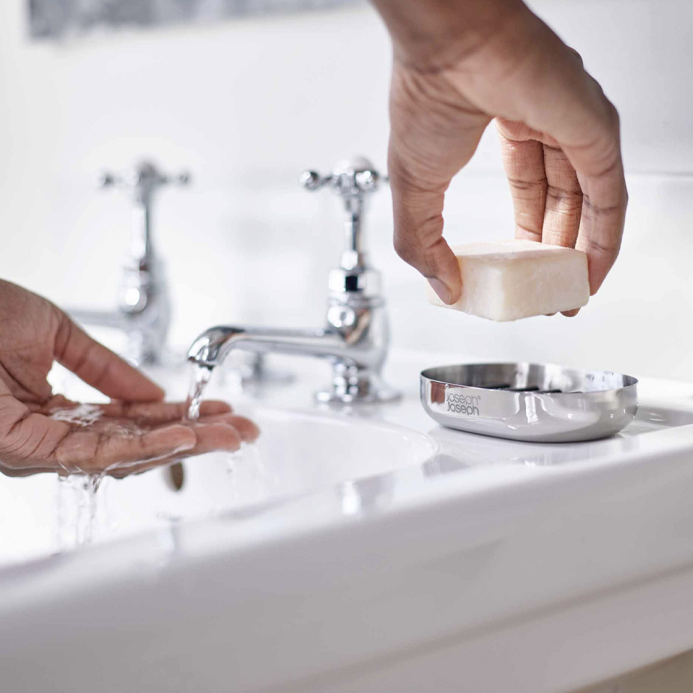 Joseph Joseph EasyStore™ Luxe, porte savon en acier inoxydable, facile à nettoyer, chrome (70579)
