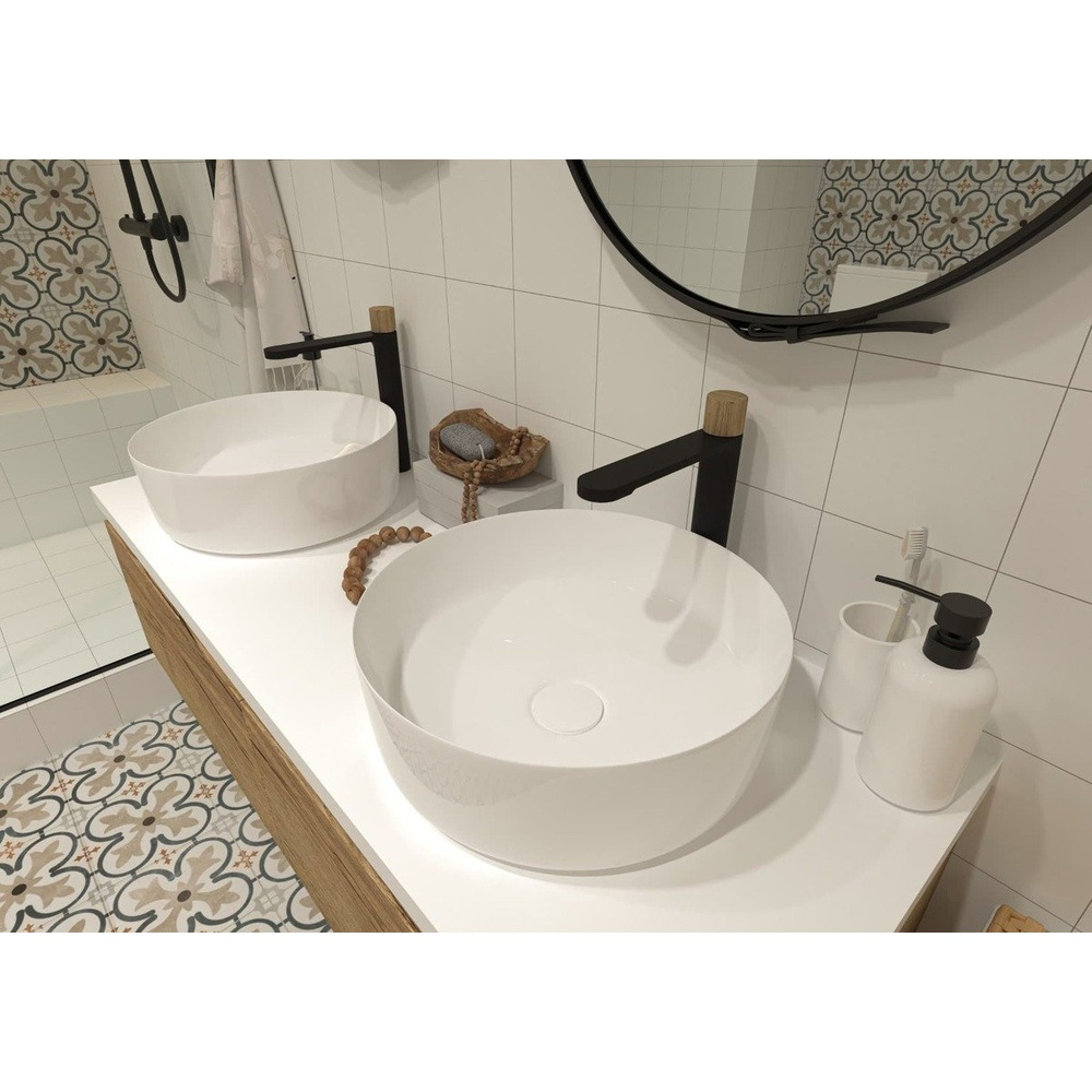 - Céramique blanche, élégante et facile à combiner avec d’autres meubles