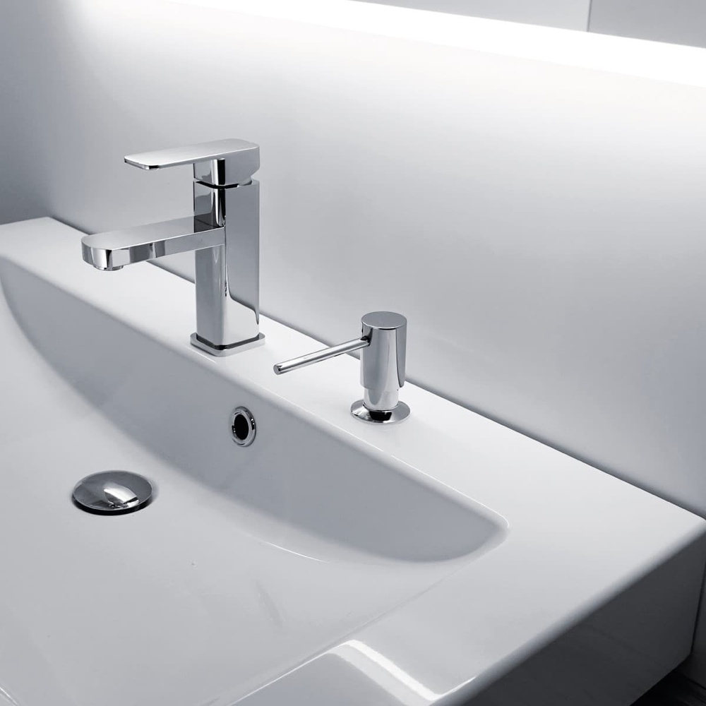 Distributeur intégré pour le savon, le gel désinfectant, le détergent pour les métaux. Diamètre de la tête de pompe 30 mm.