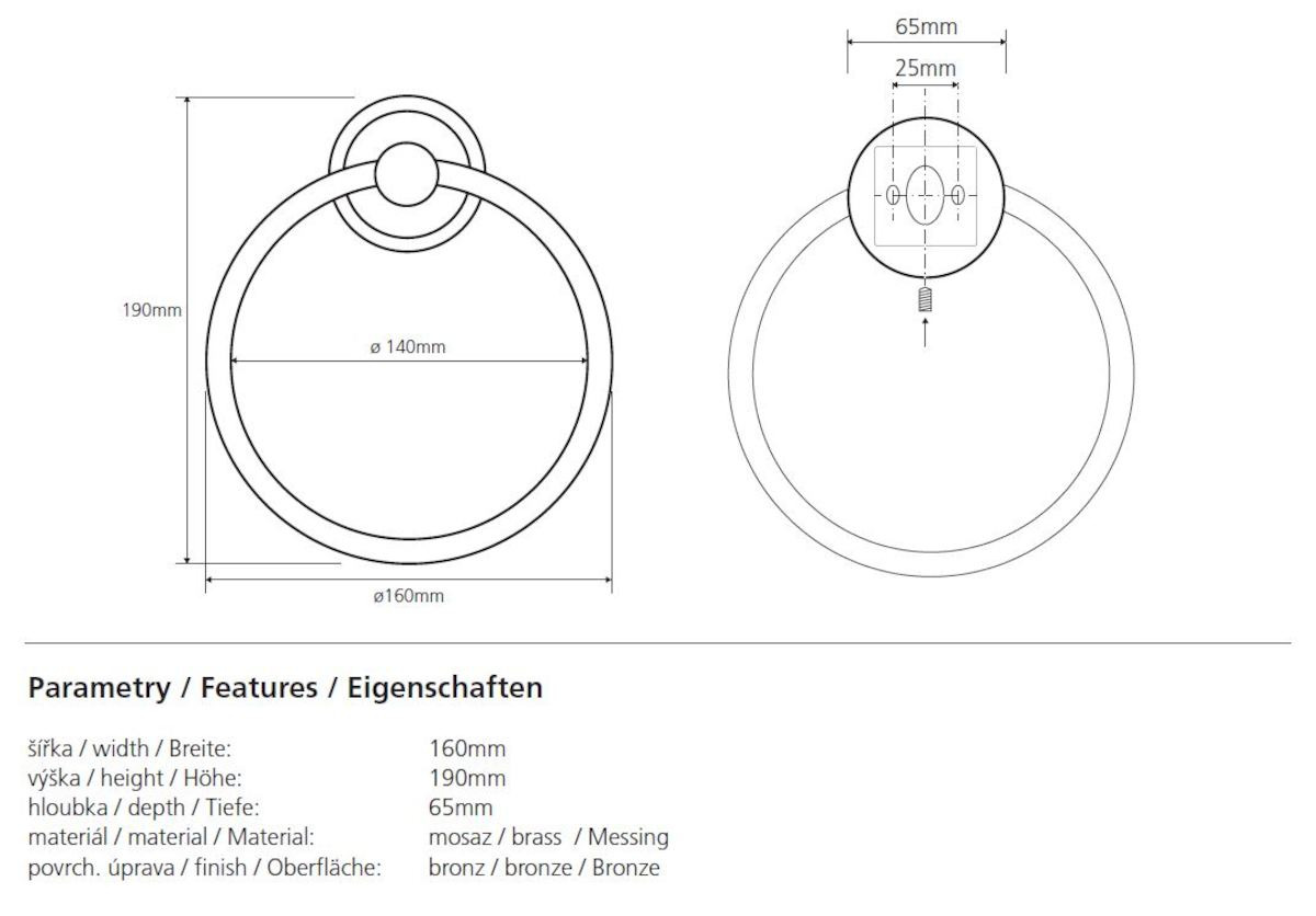 Caractéristiques du porte-serviettes anneau en Laiton, Bronze Bemeta Ricordi (OPTIMARIC60BR) :